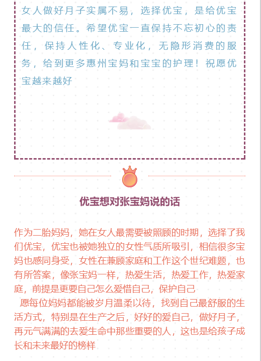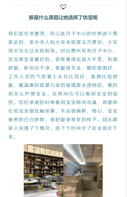 每一位走进优宝的客户,都会收获一份由衷的感动。优宝团队贴心,有爱服务每一个宝妈和宝宝,